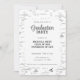 Convite fotográfico de formatura acadêmica simples, mas elegante, com um fundo de fórmulas e equações matemáticas. Perfeito para formandos de matemática e engenharia. Ilustrada e projetada por Patricia Alvarez.