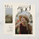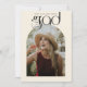 um script de tipografia moderna Clean and Chic com um quadro fotográfico arquivado em fundo de cor bege. Personalize facilmente as suas fotos de formatura e os detalhes do convite na frente e no verso.