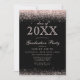 Convite Para Graduação De Fotos Pretas, Cor-De-Rosa Esbranquiçada. Este elegante design apresenta um espumante de tendências. Personalize este design personalizado com seus próprios detalhes e fotografia.