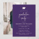 Convite para Graduação de Fotos Simples Roxo. Nossos Convites para Graduação de Script Simples Elegantes misturam sofisticação com comemoração. Cada convite ostenta um motif clássico de boné de formatura e um roteiro de caligrafia manuscrito gracioso. Disponíveis em várias cores, incluindo preto e branco, azul marinho, verde escuro, vermelho escuro, roxo e ouro, esses convites atendem a cada estilo de formando. Aumente seu anúncio com fotos personalizadas de graduação e complemente seu evento com itens coordenadores, como anúncios, etiquetas de endereço, envelopes, sinais de boas-vindas, banners, placas de jardim e artigos de mesa essenciais como placas de papel, guardanapos, xícaras e refrigeradores. Celebre este marco em estilo com a nossa coleção de tendências.