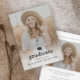 Convite para Festa de formatura de Fotografias Simples Tipo 2 com foto de retrato sangrado do cheio e texto da camada preta na frente. Na parte de trás está uma foto da paisagem com detalhes da festa ou da casa aberta. Clique em editar para personalizar fotos e texto.