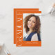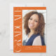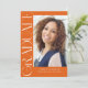 Orange Modern Elegant Vertical Two Photo Graduation Invitation apresenta um tipo divertido e moderno, juntamente com sua foto de graduação. Adicione a sua festa ou abra os detalhes da casa ao fundo.