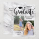 Placa de Anúncio de Graduação de Foto da Elegante Cinza Moderna branca e Black Marble, com script branco, excelente para o formando anunciar a grande conquista. Adicione suas duas fotos à frente, juntamente com os detalhes da festa de formatura na parte traseira. O impressão de padrão mármore clássico e negrito exibe classe e elegância.