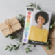 O convite à festa de formatura a cores do arco-íris personalizado com uma fotografia de cada lado do convite para comemoração da graduação. Formando anotado na lateral do convite em uma ombre arco-íris, uma cor por letra. Perfeito para uma adolescente LGBT se formando ou apenas uma adolescente que adora cores do arco-íris. Um convite à graduação colorida da tipografia moderna. Convite para graduação de tipografia no arco-íris e anúncio personalizado com fotos.