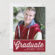 Convide convidados para o seu evento com este convite personalizável para a graduação de fotos. Apresenta uma escrita retrorreflectora em negrito e tipografia clássica. Personalize adicionando seus detalhes. Este convite para formatura de fotos vermelhas também está disponível em outros estoques de papelão e cores.