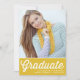 Convide convidados para o seu evento com este convite personalizável para a graduação de fotos. Apresenta uma escrita retrorreflectora em negrito e tipografia clássica. Personalize adicionando seus detalhes. Este convite para a graduação amarela está disponível em outros estoques de cartazes e cores.