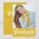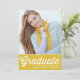 Convide convidados para o seu evento com este convite personalizável para a graduação de fotos. Apresenta uma escrita retrorreflectora em negrito e tipografia clássica. Personalize adicionando seus detalhes. Este convite para a graduação amarela está disponível em outros estoques de cartazes e cores.