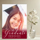 Este moderno e simples anúncio de graduação minimalista e convite de festas inclui sua foto na frente com uma camada de roteiro de caligrafia branca no marrom que lê "Formando" com seu nome e classe/ano para personalizar. A parte de trás do pátio é marrom com texto branco com toda a sua graduação e informações de festas a serem personalizadas. Desenhada por Susan Coffey.
