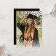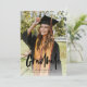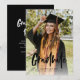 Este anúncio de graduação apresenta uma grande foto frontal de cheio com cobertura de caligrafia moderna e detalhes de festa de formatura no verso. Os elementos traseiros podem ser removidos clicando no botão para editar mais detalhes.