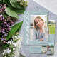 Convite de graduação azul médio elegante personalizado com uma foto no cobrir e mais três fotos no verso. Convite para formatura de lado duplo com fundo azul-prateado. 2 em 1 anúncio de graduação e convite personalizados com fotos e o nome do formando em branco.
