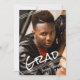Linhas brancas simples e limpas e um estilo de arte de grafite com o título "FORMANDO" sotaque seu formando e ano e quatro de suas fotos (um cheio sangrando na frente e três na diagonal no verso). A parte traseira apresenta as mesmas linhas diagonais design, três fotos e os detalhes do convite para festa de formatura em um fundo preto editável que você pode mudar para coordenar com suas fotos, cores da escola ou cores do tema da festa. DICA DA FOTO: Para obter resultados mais rápidos/melhores, escolha uma foto com o assunto no meio e/ou pré-plante para uma forma semelhante, conforme mostrado ANTES de carregar, e ela preencherá o espaço de fotos perfeitamente. Entre em contato com o designer se você quiser que este design seja modificado, em outro produto ou quiser coordenar itens para o conjunto de sua parte.