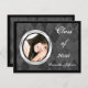 Adicione a sua fotografia personalizada a este convite de formatura ou festa. Padrão de diamante de cinza preta e carvão com argila de diamante redondo e falso fotograma de prata. Na moda e design preto e branco clássico para formandos machos ou fêmeas