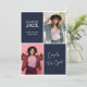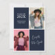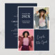 Este convite de formatura moderno e elegante apresenta fotos personalizadas do formando e pode ser personalizado para complementar suas cores escolares ou seu tema de graduação. Sacudir a placa e use as ferramentas design para atualizar com o texto.