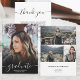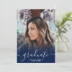 Graduação de fotos da casa aberta com script de formando azul marinho. Adicione 4 de suas fotos favoritas com uma elegante caligrafia de script e colagem de grade de fotos.
