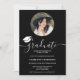 Simples branco moderno na graduação de fotos em casa aberta com script de formando preto. Adicione 1 de suas fotos favoritas com uma elegante caligrafia de script, download digital perfeito para seu formando.