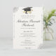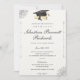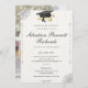 Apresentando um fundo branco clássico com sotaques refinados de canto floral, este convite ostenta um estilo sofisticado de fonte de script e um esquema elegante de preto e ouro. O design inclui um boné de formatura simbólico e um gráfico de rolagem, acrescentando um toque de tradição à sua celebração. Personalize o texto para convidar a família e os amigos para a cerimônia e celebração, assegurando que o dia especial do seu formando seja belamente comemorado. Feito em papel texturizado de alta qualidade, este convite é a forma perfeita de marcar esse marco com estilo e graça.