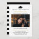 Anuncie seu formando em estilo com este convite de festas e cartão de anúncio de graduação elegante e chic. O anúncio em dois lados apresenta uma foto mais velho do seu belo formando e uma versão em preto e dourado da tendência, que pode ser personalizada com o nome do formando, ano de aula, escola e informações sobre festas. A parte de trás da placa inclui um padrão moderno de listras horizontais, preto e branco. O esquema clássico de preto, branco e ouro pode ser personalizado.