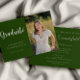 Convites Graduação de Fotos em Branco Verde com Script Eleg