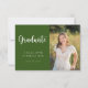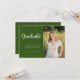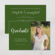 Este convite para formatura apresenta um tema elegante verde-e-branco com uma foto. A foto é apenas para fins de posicionamento e pode ser substituída por qualquer foto de sua escolha. Personalize o texto na parte frontal e traseira da placa para criar um convite de festa de formatura verdadeiramente personalizado. #pós-graduação #classe de #ensino médio