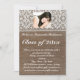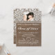 O tema simples "burlap and lace" é excelente para uma festa de formatura rústica, ao ar livre ou country, barbeque ou apenas uma garota que ama o olhar natural. Imagem textural e áspera de burlap castanho claro contrasta o delicado e elegante lugar branco. Copyright © www.CustomInvitesOnline.com