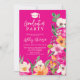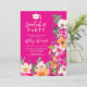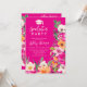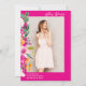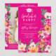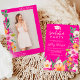 Chamando classe de 2024! Ilustração elegante e ousada das flores primavera de verão com bonito convite à festa de formatura de jardim de flores selvagens sobredimensionadas, com uma tipografia moderna de caligrafia, com flores brilhantes, cor-de-rosa-neon, laranja, verde e amarela, em fundo rosa-neon. Adicione sua foto atrás.