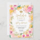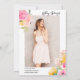 Classe de 2024! Um primavera boho chic, convite para apresentação de graduação floral de aquarela de verão com pasta pastel rosa macio, amarelo e laranja aquarela floral e dourado confetti tipografia festa de formatura com flores pintadas à mão, ramos de folha de aquarela verde com estrutura de terrário geométrica de ouro sobre fundo branco editável, adicione sua foto no fundo, perfeita para casa aberta!