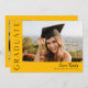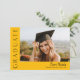 Este moderno convite elegante para a graduação de fotos em na moda apresenta uma foto horizontal e um título com um nome de script personalizável e texto na frente. As costas têm um convite com os detalhes da festa. Uma forma excelente de mostrar seu formando. Clique no botão editar para personalizar este design.