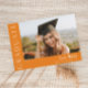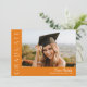 Este moderno convite elegante para a graduação de fotos em na moda apresenta uma foto horizontal e um título com um nome de script personalizável e texto na frente. As costas têm um convite com os detalhes da festa. Uma forma excelente de mostrar seu formando. Clique no botão editar para personalizar este design.