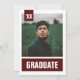 A design ultra-moderna da sua escola é colorida com um fundo texturizado. Inclui espaço para uma das suas fotos de mais velho favoritas na frente. O verso tem toda a cerimônia de formatura e detalhes da festa. Dramática e elegante escolha para a ocasião de formando. Disponível em vermelho, laranja, roxo, verde, azul, verde florestal, marinho, laranja queimado, marrom, ouro, azul em pó e preto. Produtos correspondentes disponíveis.