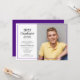 Este convite de festa de formatura clássico apresenta uma fotografia e um texto personalizado para os detalhes da festa de formatura. O design é acentuado com a cor púrpura.