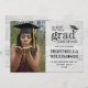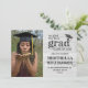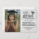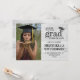 Convite simples, na moda, para a graduação de fotos rústicas, mostrando o fundo de tábuas brancas e tipografia. O título principal diz TÃO FELIZ POR ESTE FORMANDO à direita, e há uma foto personalizável à esquerda. Adicione seu nome e detalhes para substituir o texto de marcador de posição na frente e no verso.