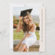 Simples, mas na moda, este anúncio de graduação e convite apresenta uma tendência moderna de ponta ondulada junto com uma simples tipografia para anunciar seu formando. Com uma foto grande na frente e outra atrás, esta formando design uma forma de excelente para mostrar duas fotos de mais velho. A borda ondulada é uma cor esbranquiçada e macia, com texto preto. O dorso é um preto coordenador com tipo de luz. A parte traseira também oferece espaço para texto de convite de festa de formatura ou outras informações, como planos futuros. Este anúncio de graduação exclusivo original e o convite de festa de formatura de Lea Delaveris Design também estão disponíveis como download de arquivo de lançamento de graduação digital.
