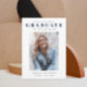 Um anúncio de graduação de fotos simples e limpo com detalhes de convite no verso. Este design apresenta um grande tipo de formando e nome de estudante acima de uma foto retrato do formando.