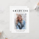 Um anúncio de graduação de fotos simples e limpo com detalhes de convite no verso. Este design apresenta um grande tipo de formando e nome de estudante acima de uma foto retrato do formando.