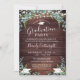 Bonito convite à festa de formatura rústica para madeira castanha escura com cor d'água eucalipto verde e bonés de formatura brancos ou pranchas de mortalha e elegante tipografia manuscrita. ASSISTÊNCIA: para obter ajuda com a modificação ou personalização do design, transferir o design para outro produto ou, se você quiser coordenar itens, entre em contato com o designer ANTES DE ENCOMENDAR através da guia MENSAGEM de Bate-papo Zazzle ou envie um email para makeitaboutyoustore@gmail.com.