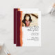 Este convite para festas de formatura simples e clássico apresenta cores arrojadas e laranja com o aspecto de papel rasgado ao longo de um lado e um lugar para colocar o seu retrato de mais velho na frente. O texto totalmente personalizável permite que você use este convite precipitado para qualquer evento, como festa de aniversário e outras ocasiões especiais.