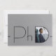 Um convite para festa de formatura de foto moderno do doutorado com um esquema prateado (não-laminado) e preto. Celebre o seu doutorado com este convite para na moda. Basta adicionar sua foto e informações, adicionar este convite ao seu carrinho e celebrar esta grande conquista. Design de Natal de Convite para PhD de Foto Preta do Prata Moderno | ©Melissa Patton - Designer