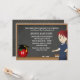 Convite à graduação de professor personalizado com um professor de pé num quadro de chalkboard uma maçã que pode ser monograma. Adicionar os detalhes da festa de formatura