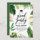 Convite para festas de formatura sobre temas tropicais com flores tropicais de cor aquosa e folhas, como hibisco, plumeria, monstera e palmeiras. Personalize adicionando seus próprios detalhes. Este convite de festas de formando tropical é perfeito para graduações havaianas e de praia.