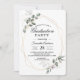 Celebre o marco especial do seu formando com este elegante convite para festas de formatura de temas verdes. Com folhas de aquarela macia, delicadas flores brancas e uma estrutura geométrica de ouro moderna, este design combina sofisticação e beleza natural. Totalmente personalizável com o nome, data, hora, local e informações de RSVP do seu formando — ideal para festas de jardim, eventos minimalistas ou comemorações rústicas modernas.