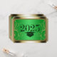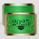 Um cartão verde e dourado convidando os apaixonados a honrar um formando maravilhoso em seu dia especial de celebração.