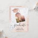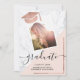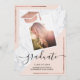 Mármore branco minimalista simples e bloco cor rosa esfarelado com rosa de graduação de formando de quadro dourado com elegante tipografia moderna e boné de formatura.