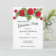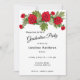 Esta design elegante apresenta rosas vermelhas cercadas por verde. O texto pode ser personalizado para o seu evento especial. A parte traseira tem um espaço reservado do design que você pode substituir por sua própria foto ou deixá-la como está.