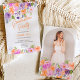Uma ilustração moderna, pintada à mão, de flores bonito de verão, primavera com bonito cor de laranja e roxo, e uma festa de formatura de pincel com tipografia caligráfica moderna e ilustrações de aquarela verde.