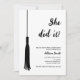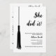 Celebre um marco importante com o nosso convite moderno e na moda! Apresentando um elegante design preto-e-branco, este convite ostenta um texto "Ela Fez!" e uma fita-formando, fazer a forma perfeita de comemorar o trabalho e a dedicação do duro. Adicione um toque pessoal carregando uma foto do formando e personalize o texto para ajustado dos detalhes do evento. Seja um segundo grau, uma faculdade ou uma graduação na escola formando, este convite certamente impressionará. Peça o seu hoje e prepare-se para a festa!