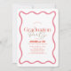 Esta tendência, retrorreflectora e convite de festa de formatura moderno apresenta um fundo branco com um quadro de onda cor-de-rosa. O verso apresenta um fundo vermelho com padrões geométricos cor-de-rosa. Personalize-o para as suas necessidades. Você pode encontrar produtos correspondentes na minha loja.