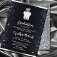 Convite para Graduação Dental Elegante Black Silver Sparkle. Um fundo preto chic, decorado com falso brilho prateado, brilhos. Personalize adicionando nomes e detalhes.