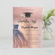 Dourado boné de formatura brilhante, vestido de glitter cólico e diamantes dourados num fundo de ombreira rosa dourado.