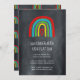 Convite para formatura de jardim de infância bonito, com fundo de chalkboard e arco-íris de giz desenhado à mão com coração. Perfeito para uma festa de jardim de infância ou um convite à família para celebrar seus formandos!