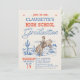 Vintage Blue Western Desert Graduation Convite para a graduação de segundo grau Blue e red first cowboy rodeo, apresentando uma paisagem desértica, estilo de corda e outro texto de fonte no estilo ocidental.